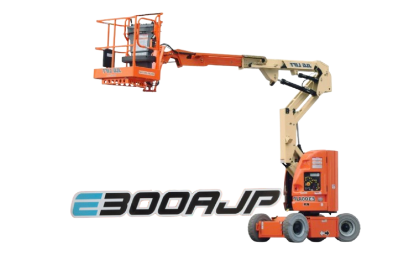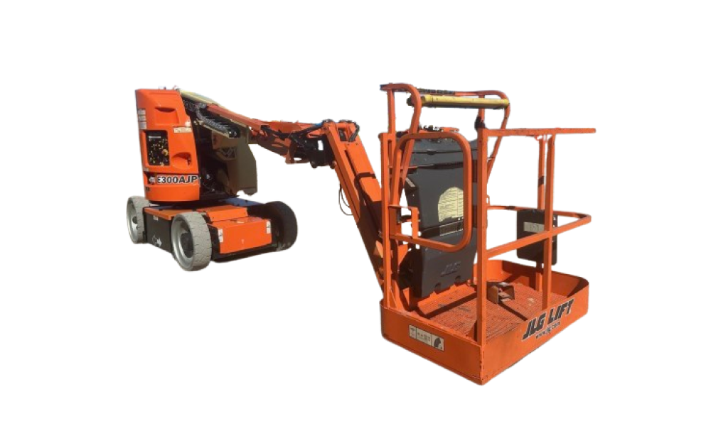 USED 2013 JLG E300AJP MAN LIFT / BOOM BUCKET, ROTATING BASKET,POWER TO PLATFORM, HOUR METER READS: 6,636 APROX., HIGH REACH, S/N:0300165436, COMPLETE, INSPECTED AND TESTED RUNNING